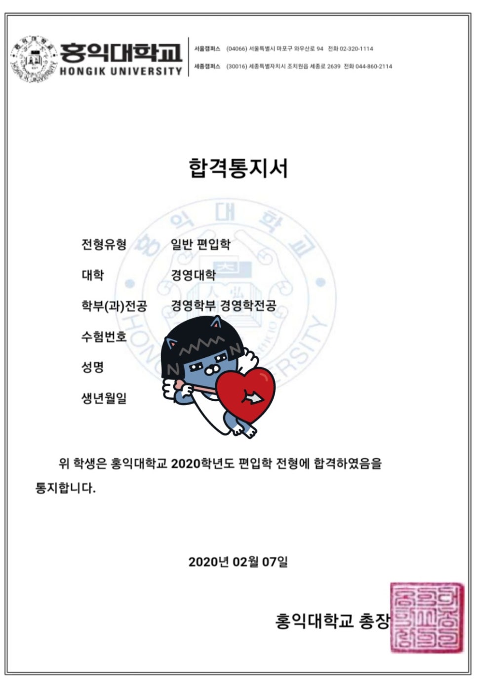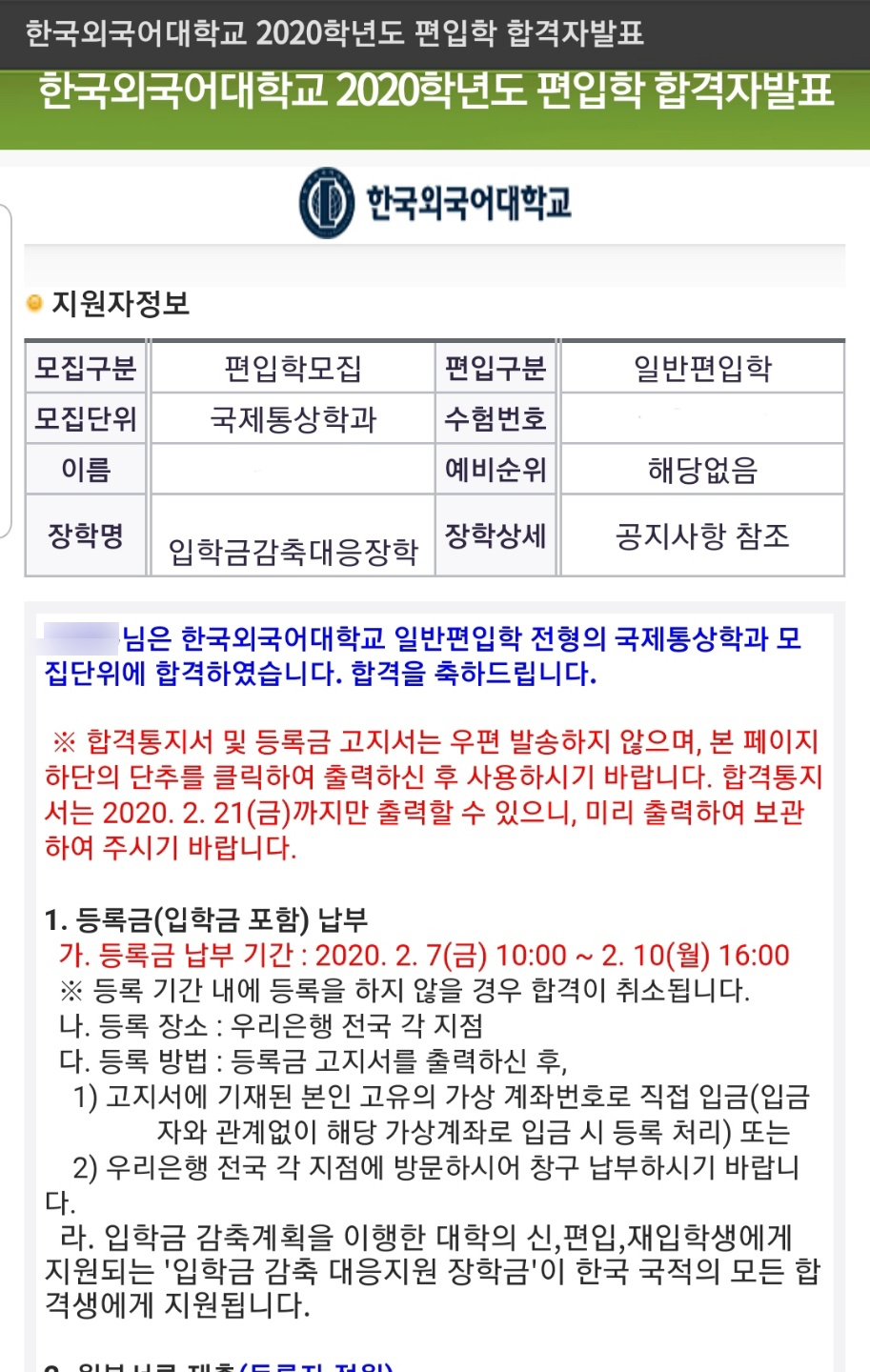 서성한이중 등 최상위권부터 다수 대학에 지원하여 최종적으로 한국외대, 건국대, 국민대, 홍익대 4개 대학에 최초 합격했습니다.