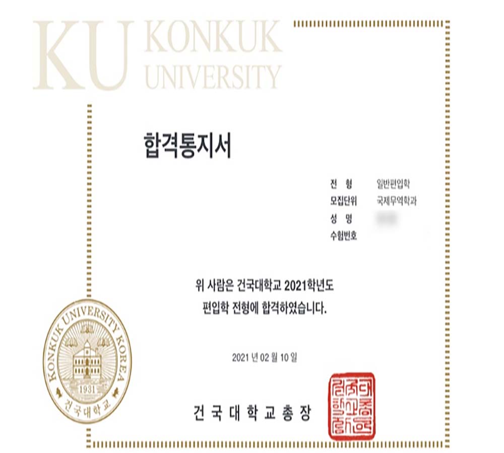 덕성여자대학교에서 편입을 준비하여 건국대학교와 동국대학교 국제통상학과에 합격했습니다.