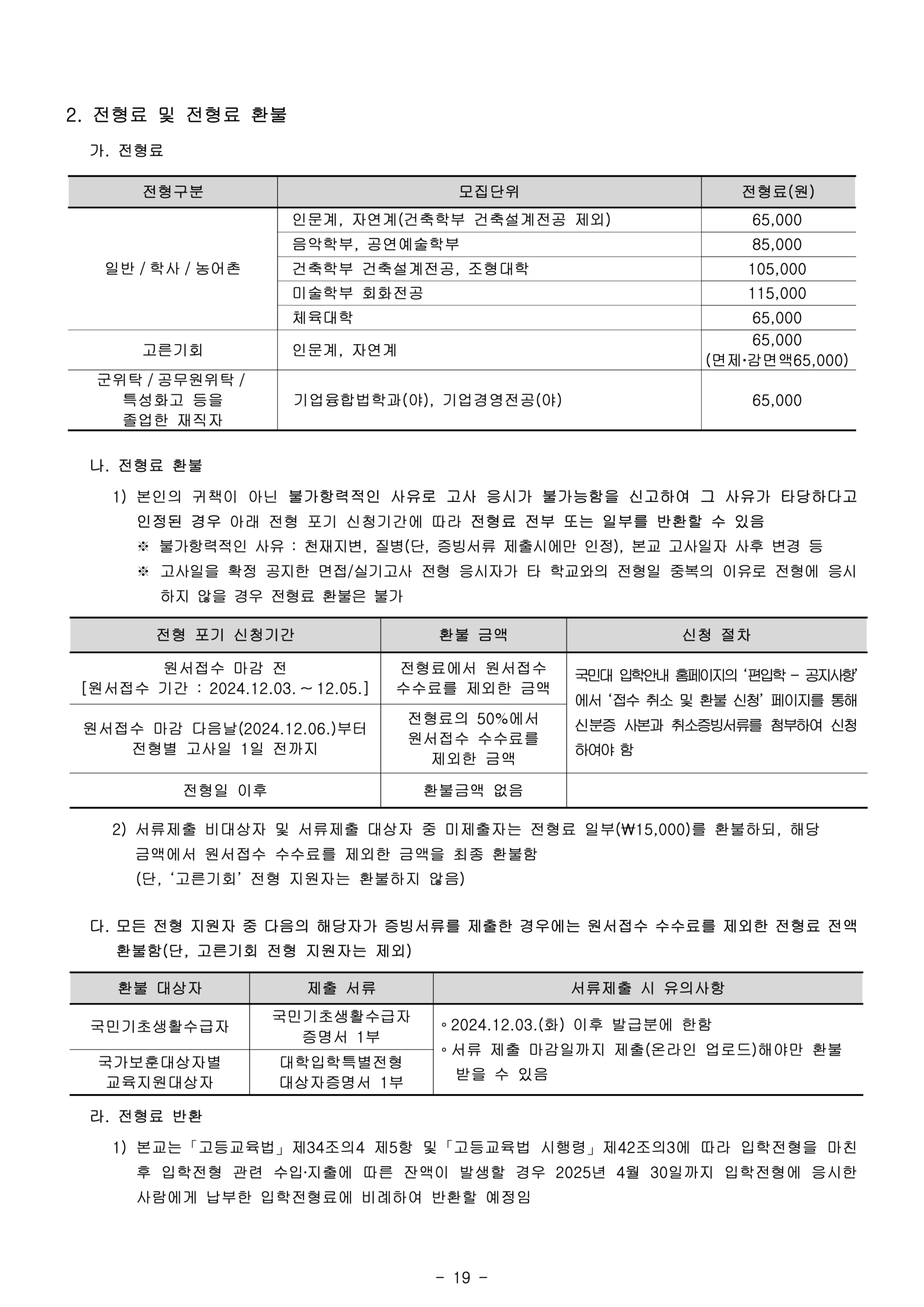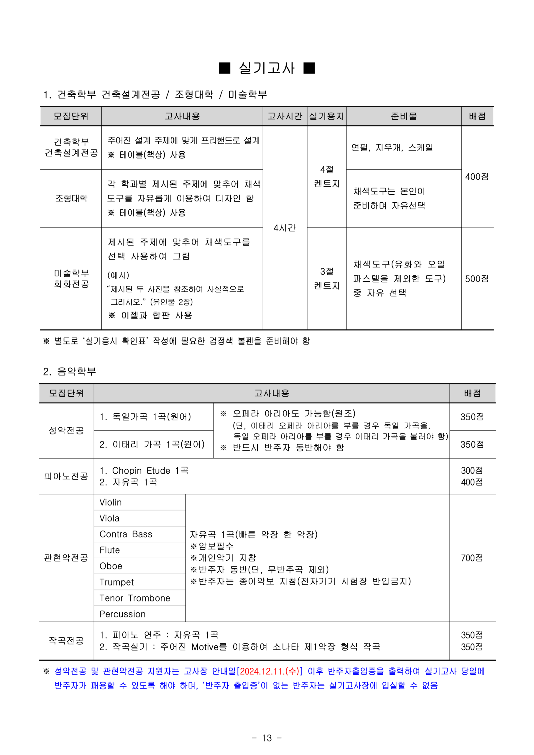 필기/면접고사 | 2024. 12. 22. | 해당 모집단위 |