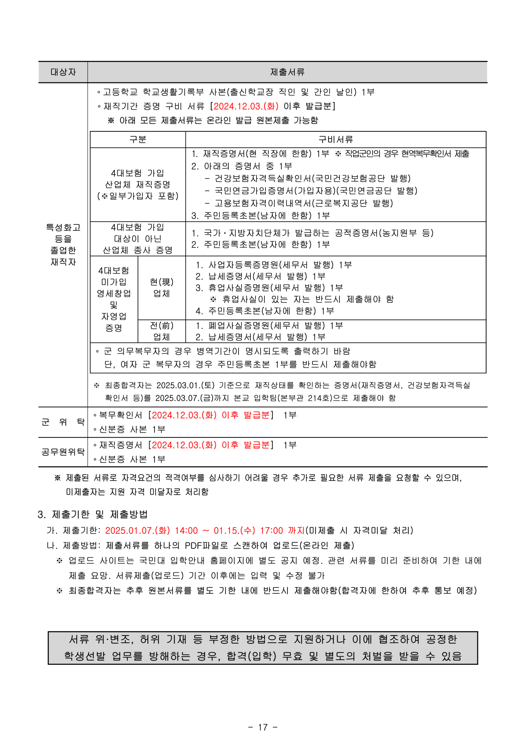 군위탁/ 공무원위탁/ 특성화고 등을 졸업한 재직자