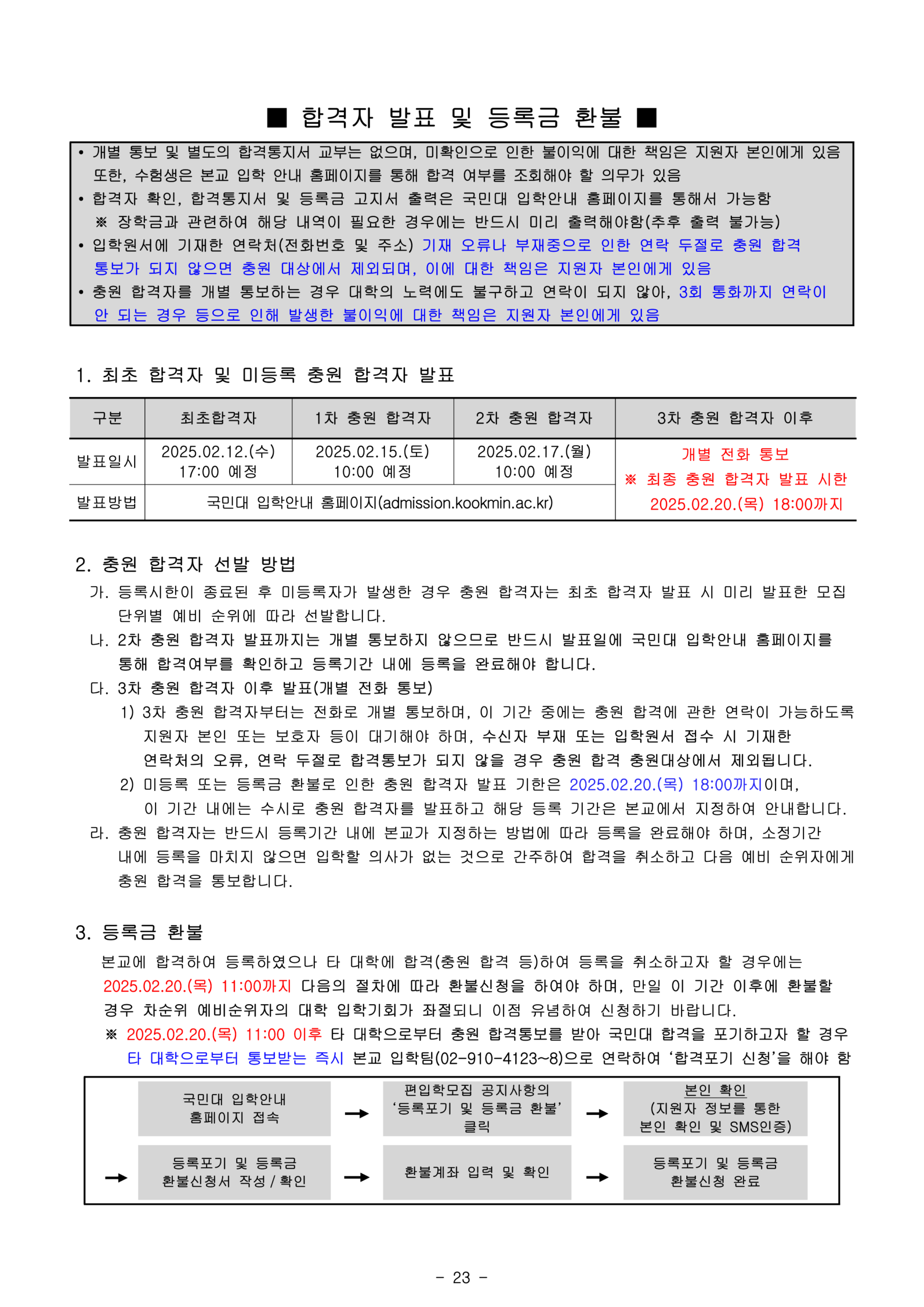 최초 합격자 발표 | 2025. 2. 12. | 입학처 홈페이지 |
