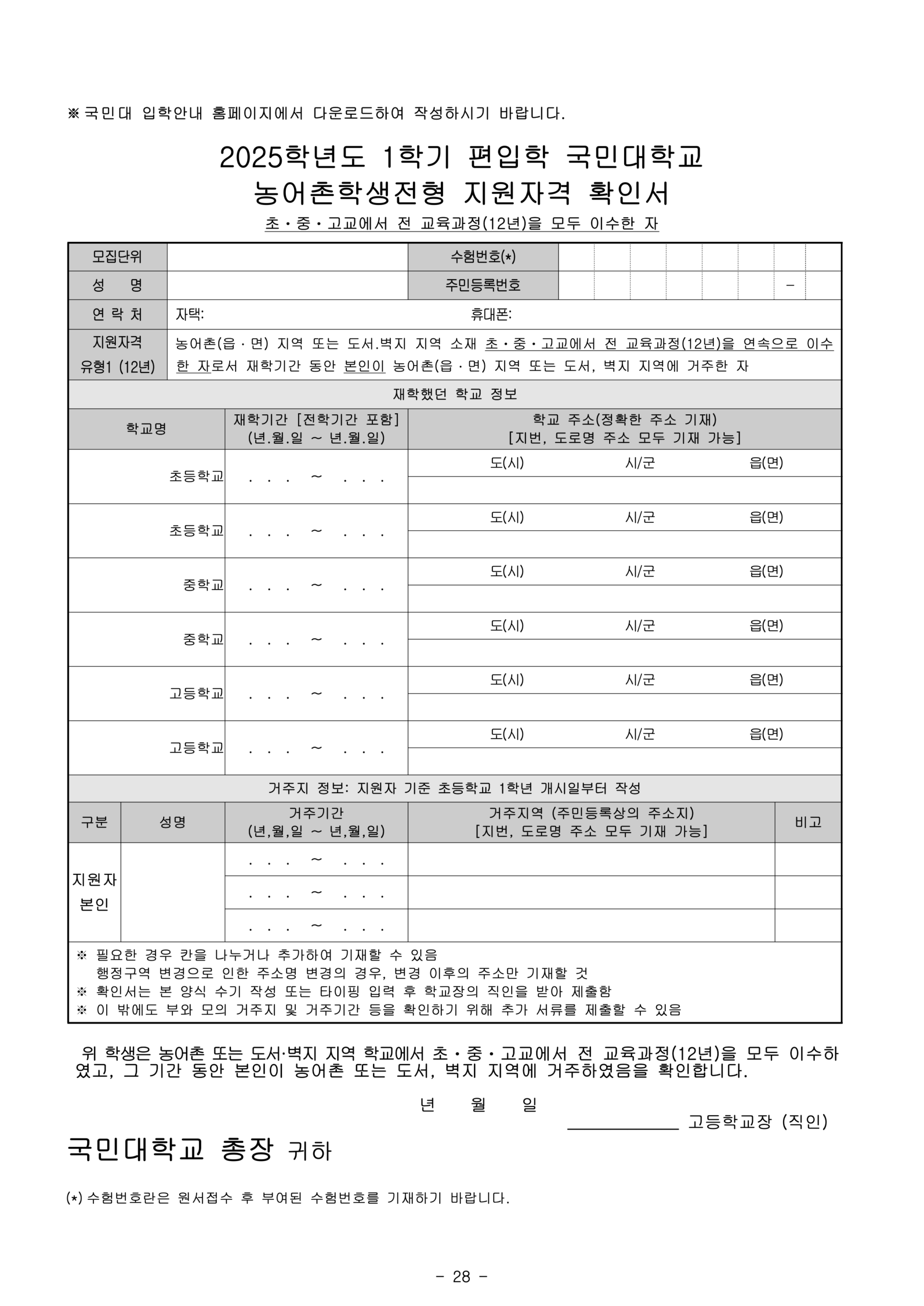 🗓️ 2025학년도 국민대 편입 핵심 일정