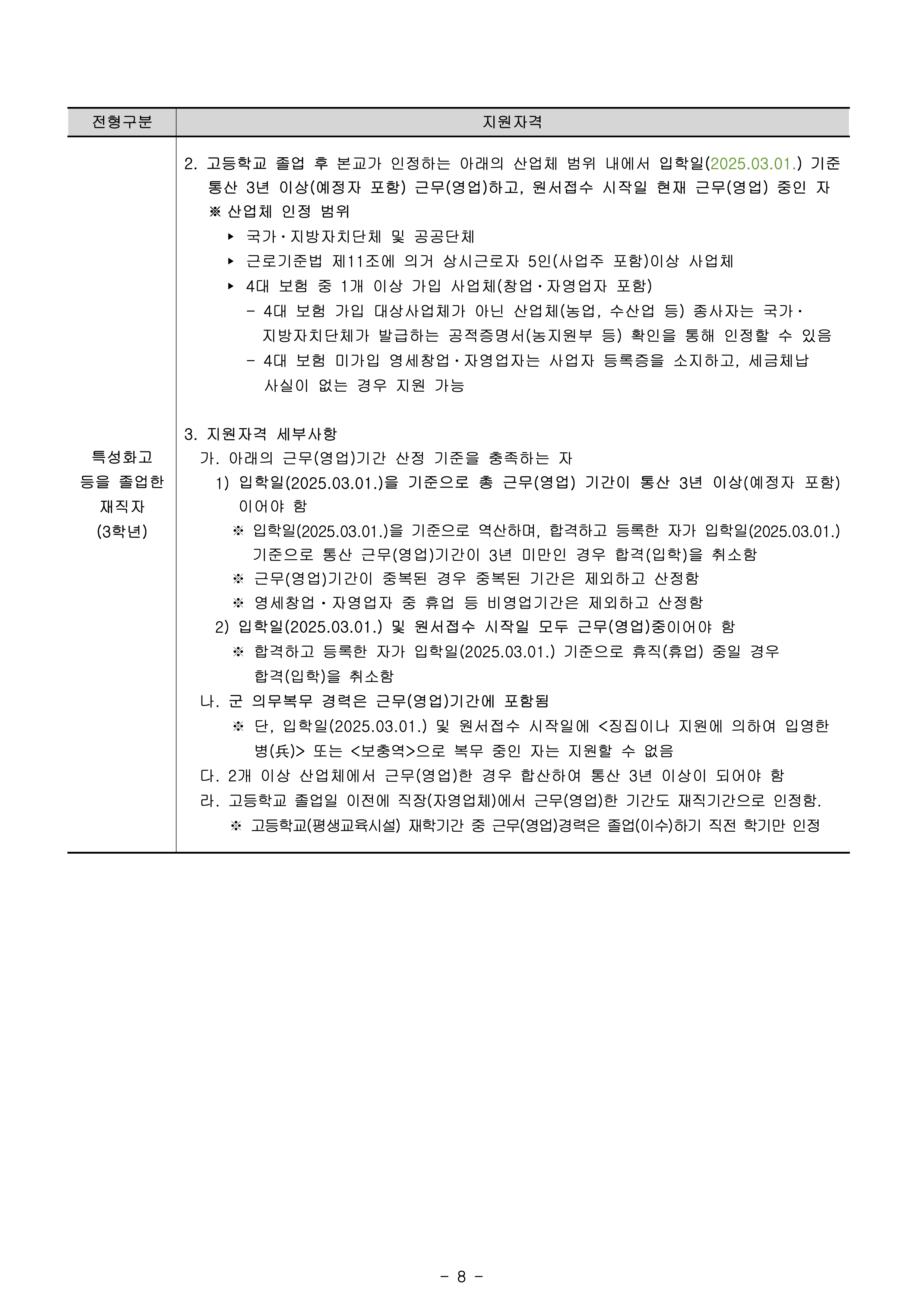 나. 군위탁/공무원위탁/특성화고 등을 졸업한 재직자