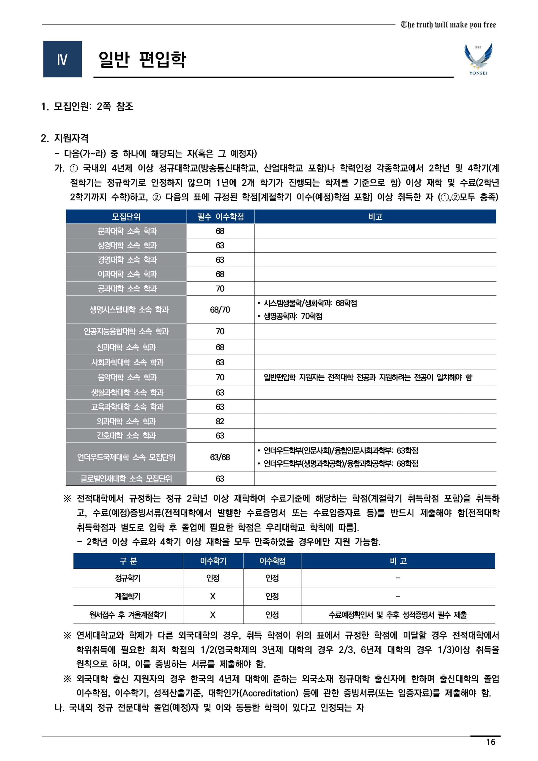 연세대 편입요강 자료 꼼꼼히 잘 확인하세요!