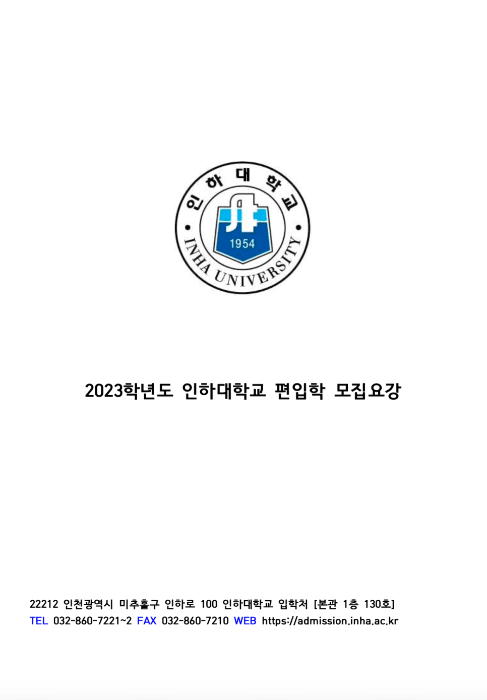 첨부파일2023 인하대 편입요강.pdf 파일 다운로드