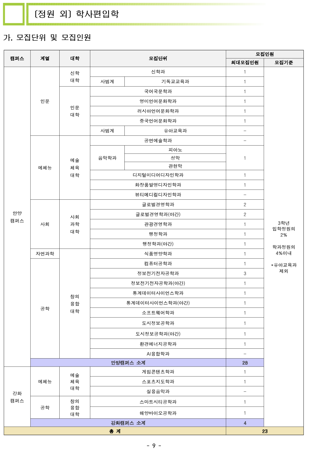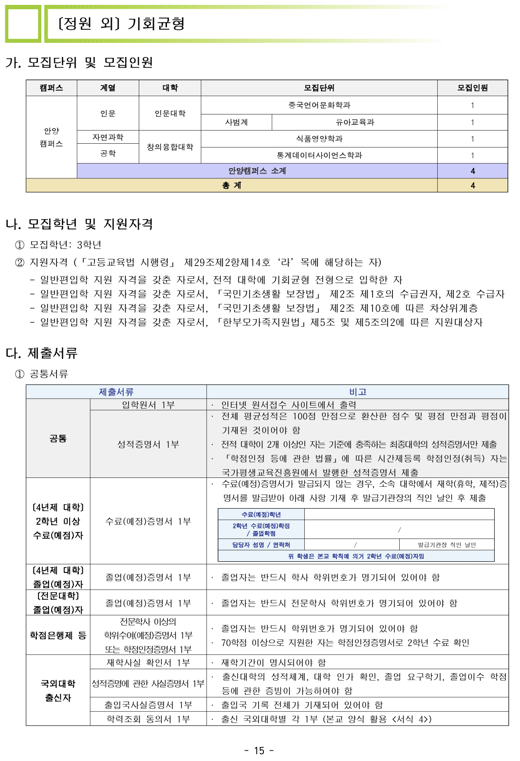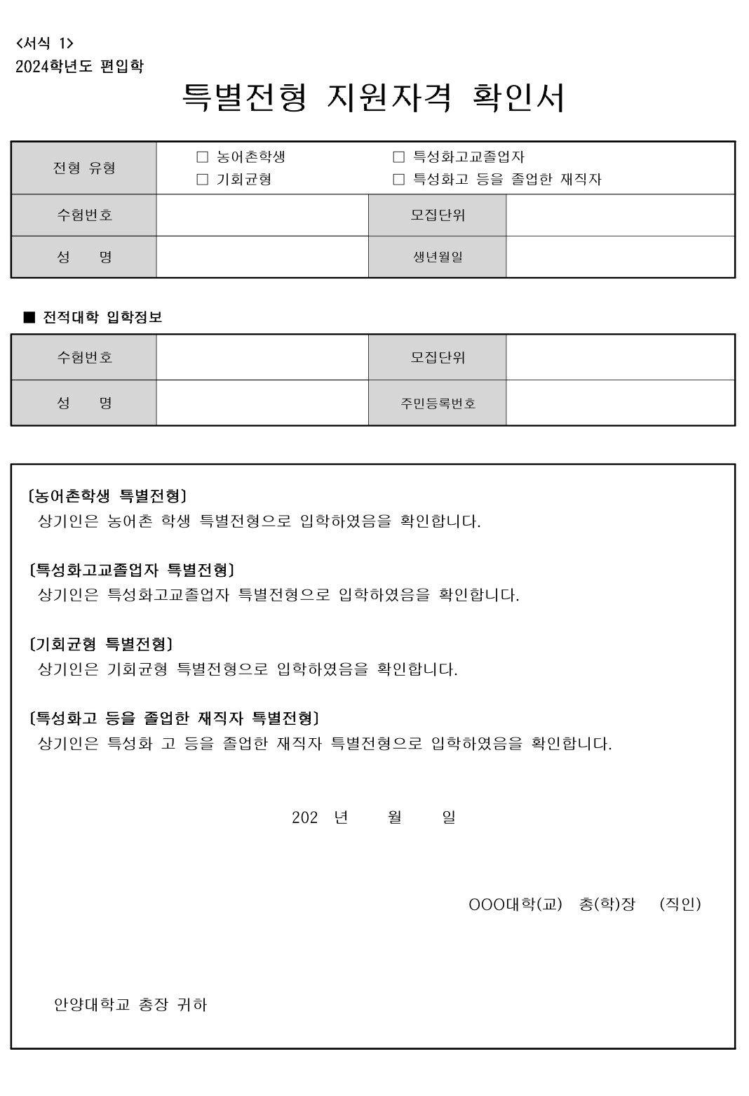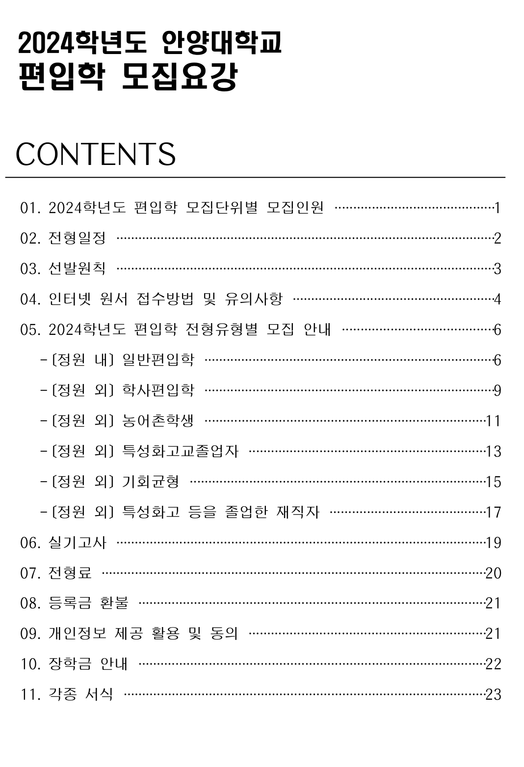 2024학년도 안양대 편입요강입니다