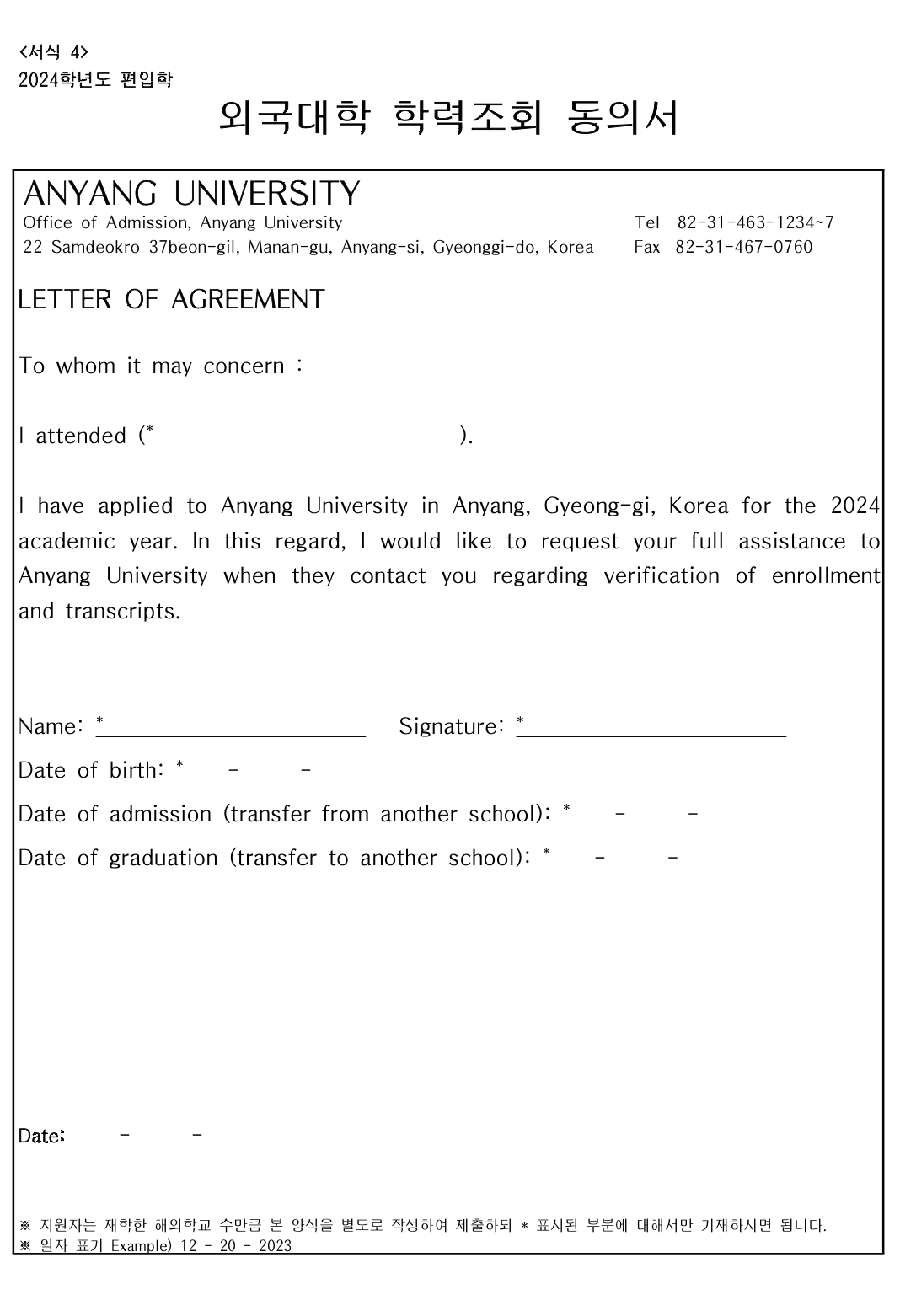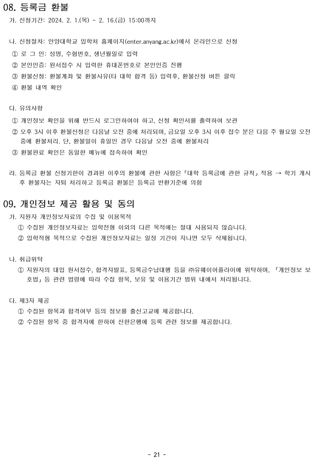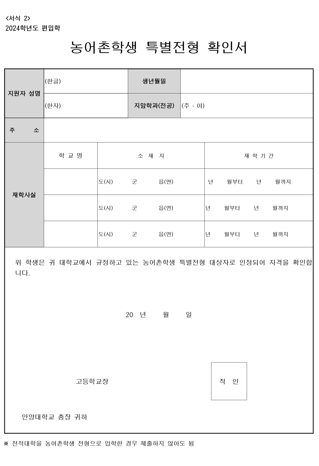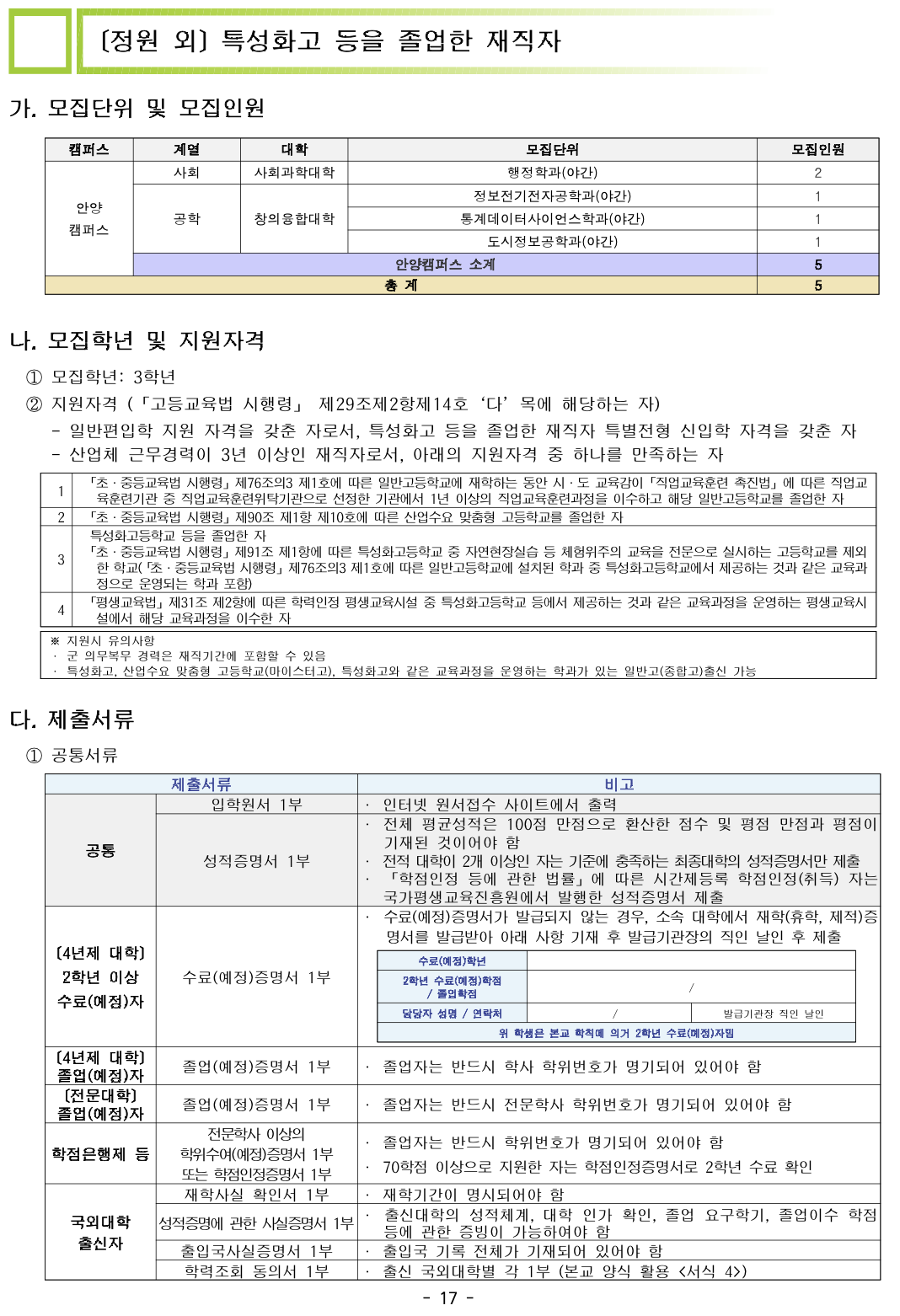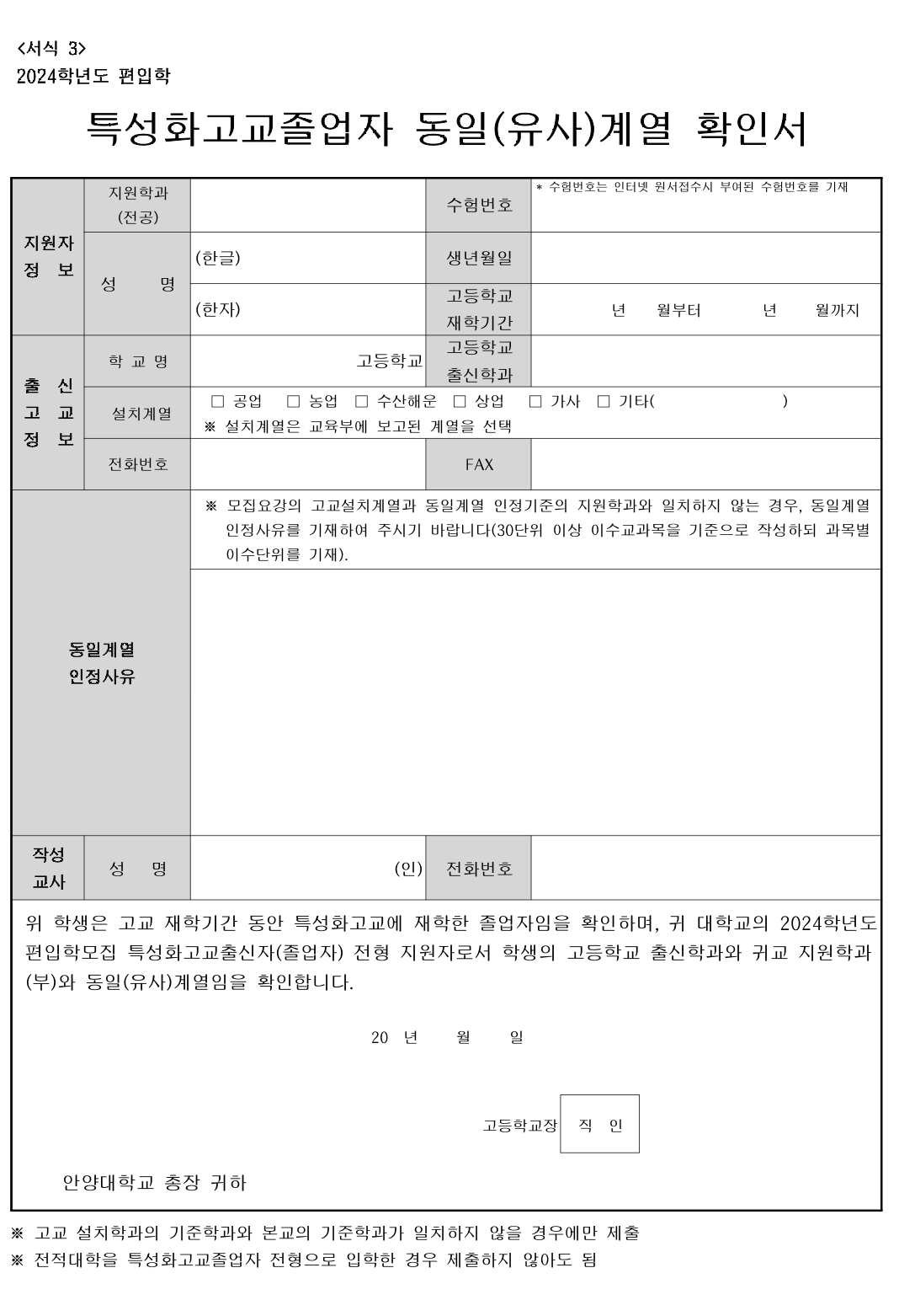 2024학년도 안양대 편입요강입니다